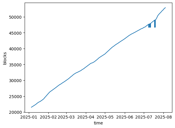 This nodes block height over time: