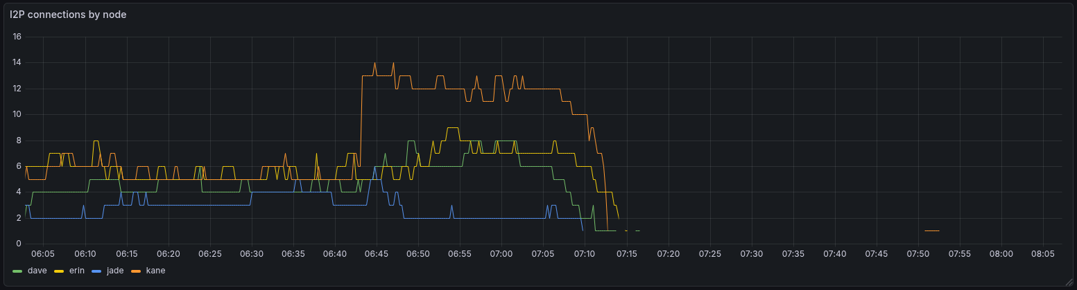 One idea I had why kane saw more I2P connections shortly before I saw the attack on my nodes was: Other nodes were affected first. So their I2P connections went down and they started to look for a new connection. Since they could still reach me, my I2P connections increased.