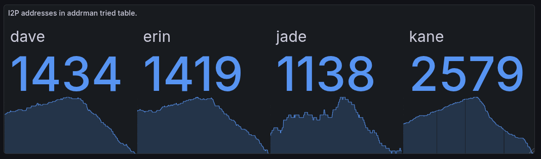 For example, the I2P addresses in the addrman tried table (we tried this address and there was a reachable node behind it) has been declining slowly since the I2P attack started on 2026-02-03: