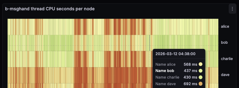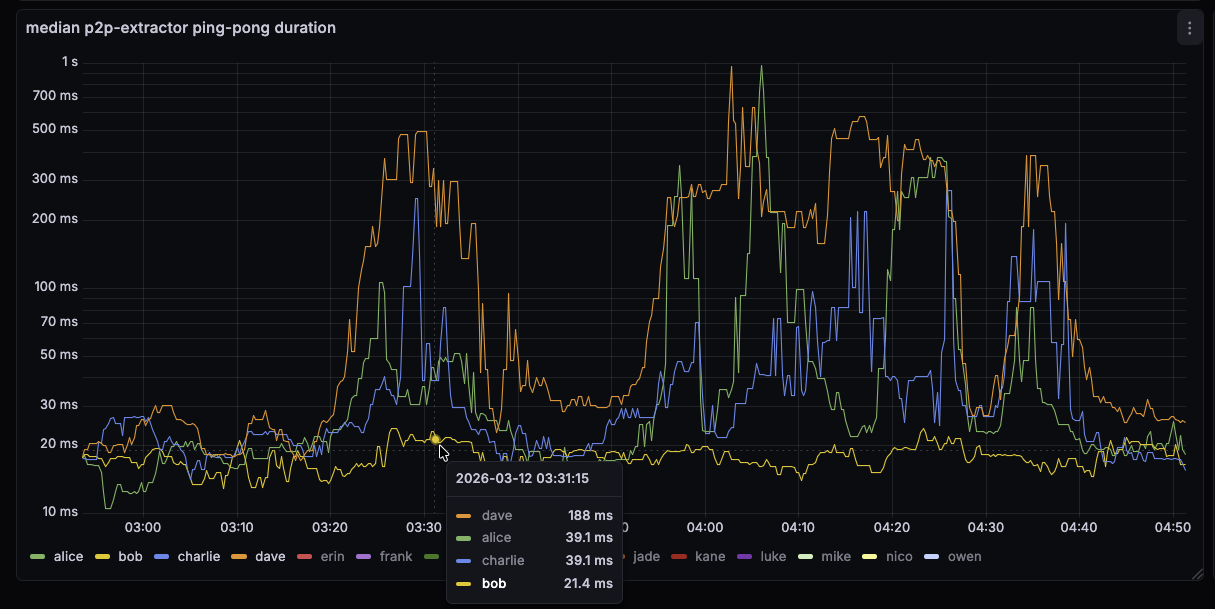 And the response time for a localhost ping didn’t increase for bob, while it did for the other nodes.