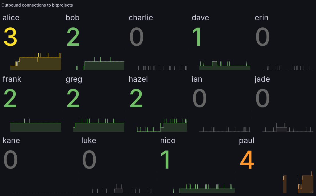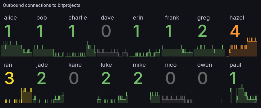 I’ve set up some data collection on the number of outbound connections I have to the bitproject IPs (also inbound, but don’t seem to have gotten any inbounds from them).