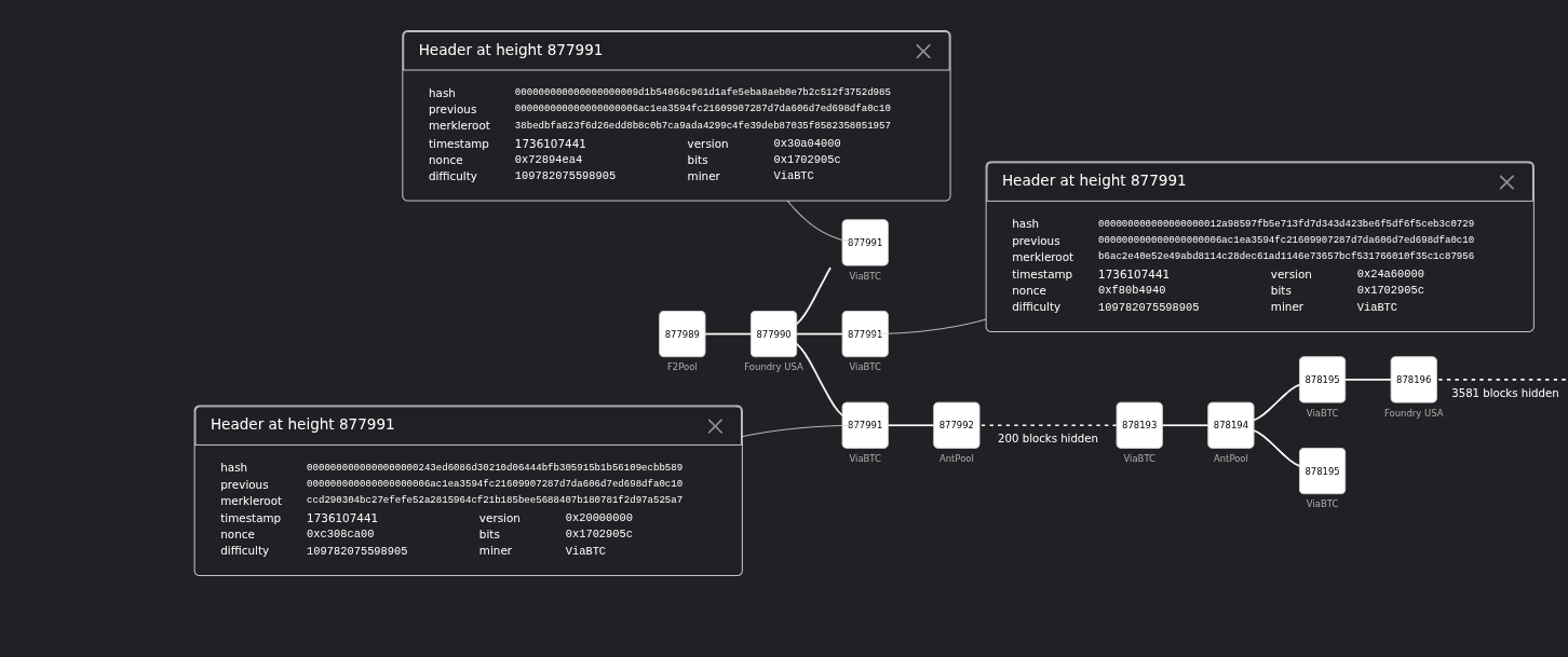 At height 877991, ViaBTC mined three blocks. I hadn’t seen this before.